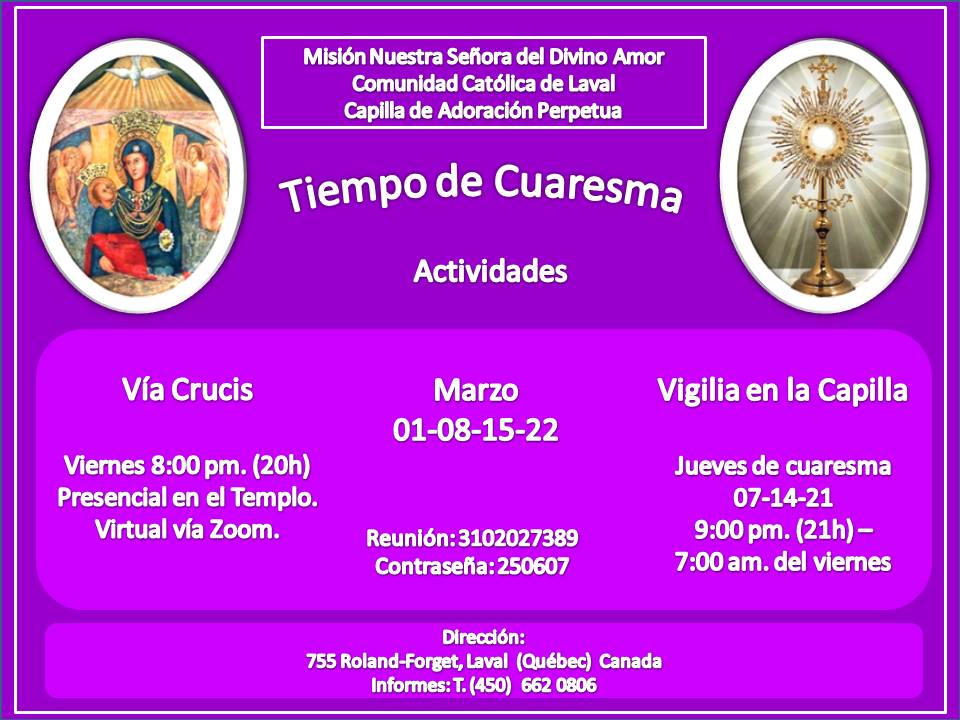 Cuaresma 2024 Publicado porLinda Quevedo6 de marzo de 2024Publicado en Sin categoría ¡Te invitamos a las actividades de Cuaresma 2024! Comparte esto: Haz clic para compartir en X (Se abre en una ventana nueva) X Haz clic para compartir en Facebook (Se abre en una ventana nueva) Facebook Me gusta Cargando... Relacionado